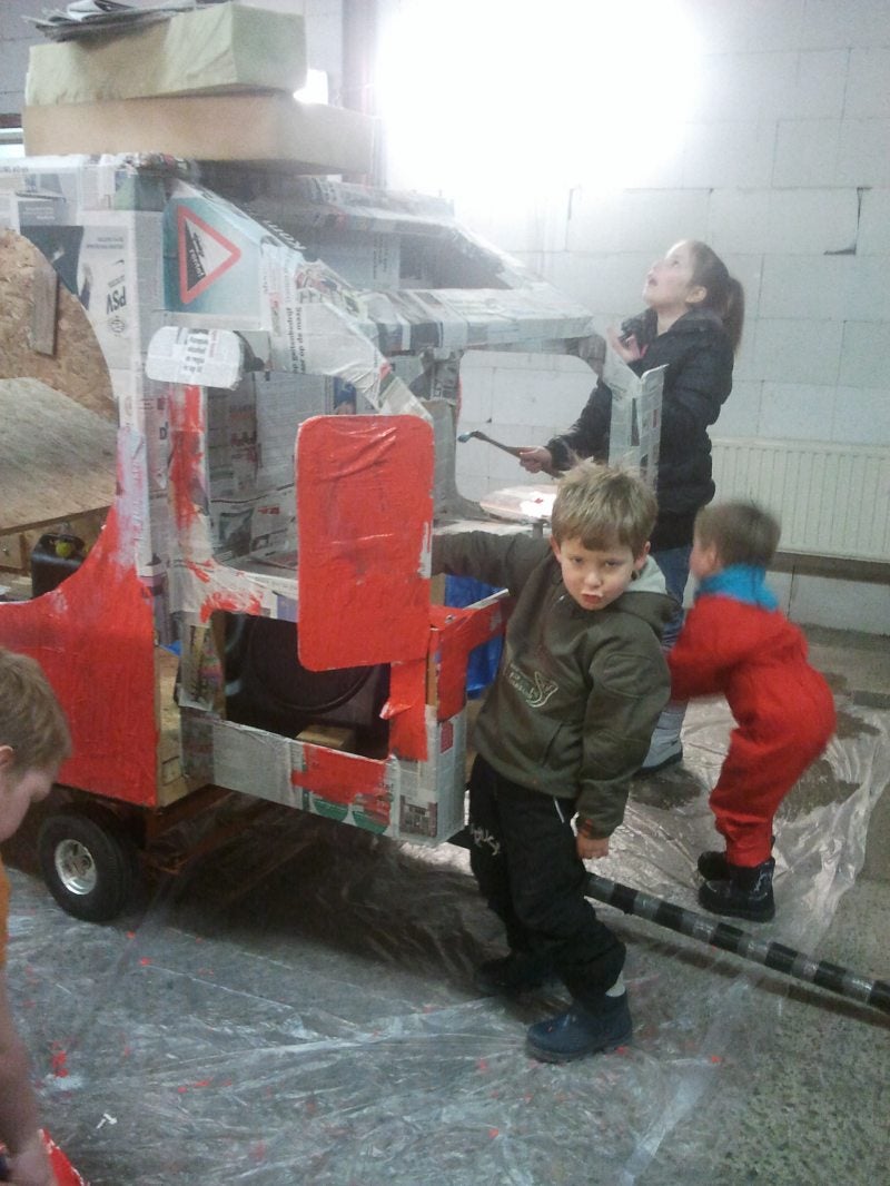 Maar dan ook een heuse vuilnis wagen, onze eigen GATMOBIEL, met muziek en onze eigen liedjes!!!!!!!!!!!!!!!!!!!!!!!!!